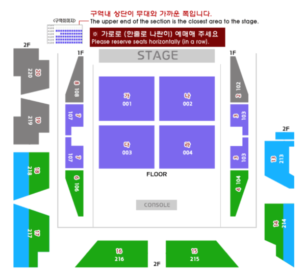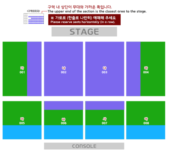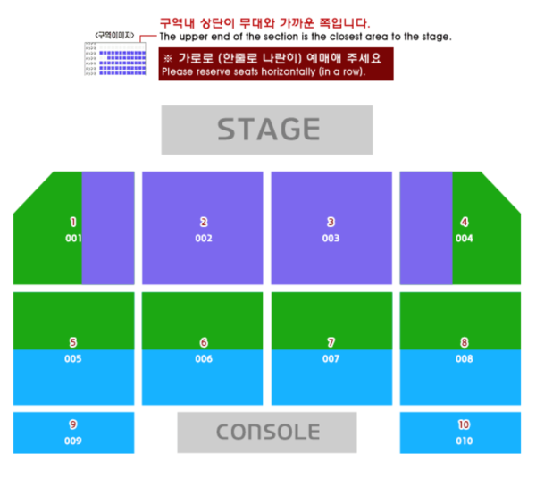 티켓 가격은 서울 및 다른 지역 공연과 동일하게 좌석 배치도는 아래 참고하시기 바랍니다.