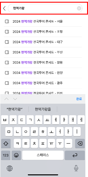 ✔ 검색 창에 현역가왕을 검색한 후 원하는 지역을 선택합니다.